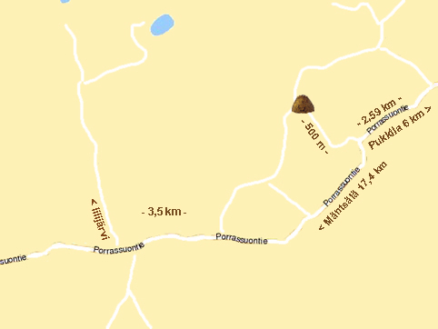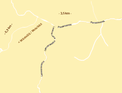 kulkee Korpilammen Itäpuolelta. Käänny oikealle ja aja 3,5 km, jolloin tulet