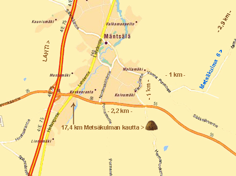 2) Metsäkulman kautta (lyhin tie Mäntsälästä):