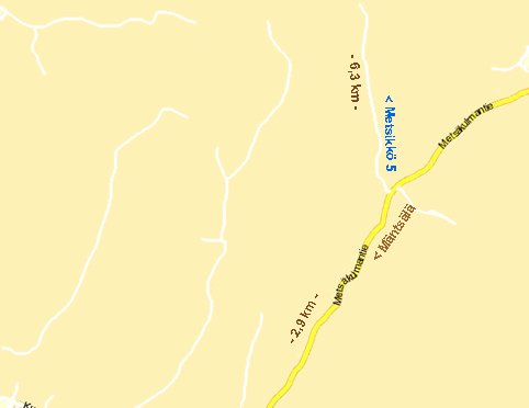 "Metsikkö 5". Aja Metsikön tietä 8,3 km, kunnes tulet